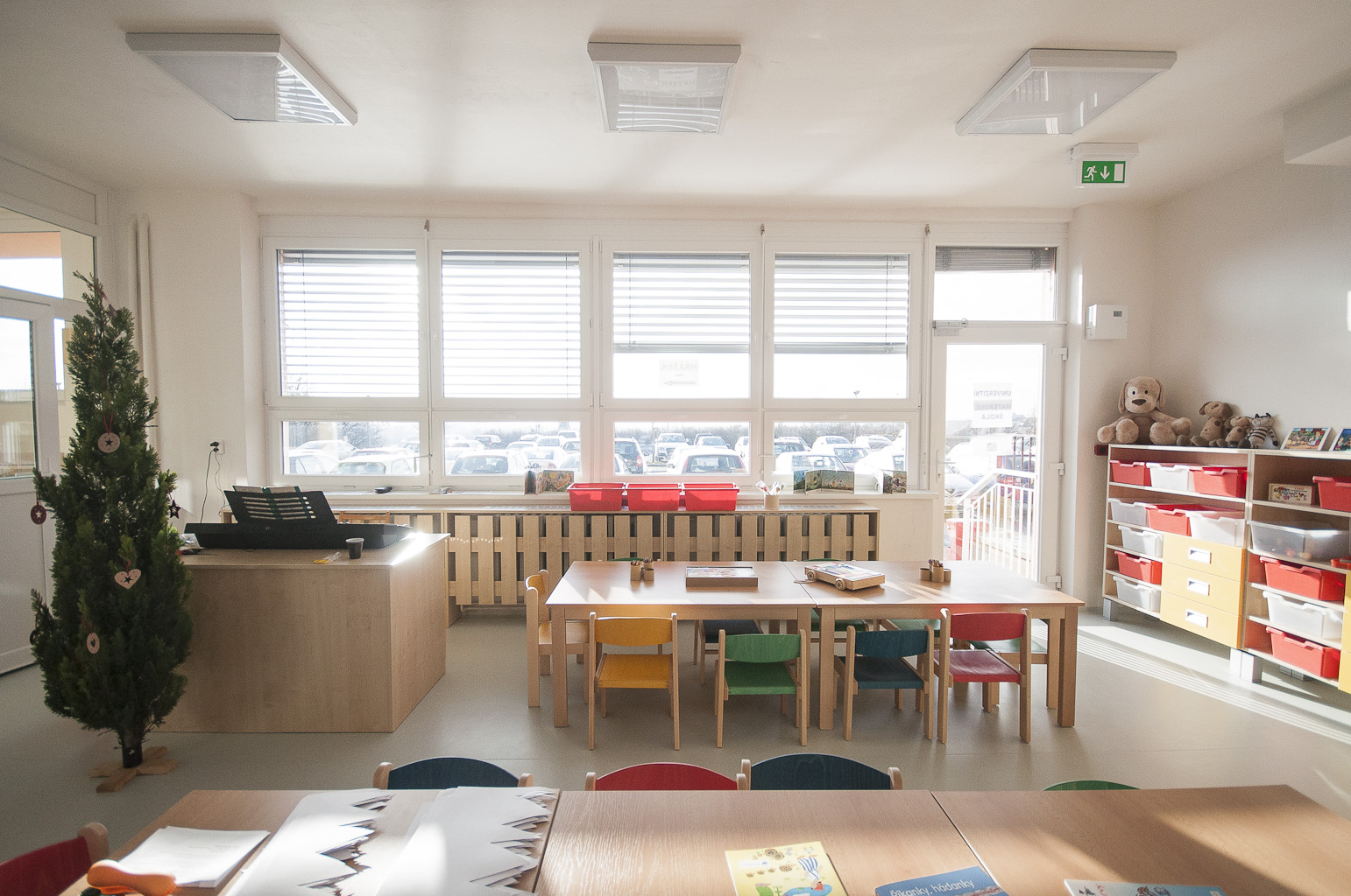 Mateřská škola je umístěna v lokalitě velmi blízké univerzitnímu areálu. Uvnitř je mateřská škola členěna na dvě třídy po 20 dětech - celková kapacita je stanovena na 40 dětí. Třídy jsou vybaveny novým nábytkem, hračkami a didaktickými pomůckami. Věkové složení tříd je heterogenní od 3 let do předškolního věku. Součástí mateřské školy je školní jídelna – výdejna. Strava je dovážena ze Školní jídelny při ZŠ Merhautova.