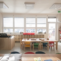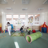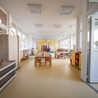 K mateřské škole přiléhá oplocená zahrada, na zahradě bude na jaře provedena úprava terénu a zatravnění, následovat bude postupné vybavení herními prvky a osázení zelení.